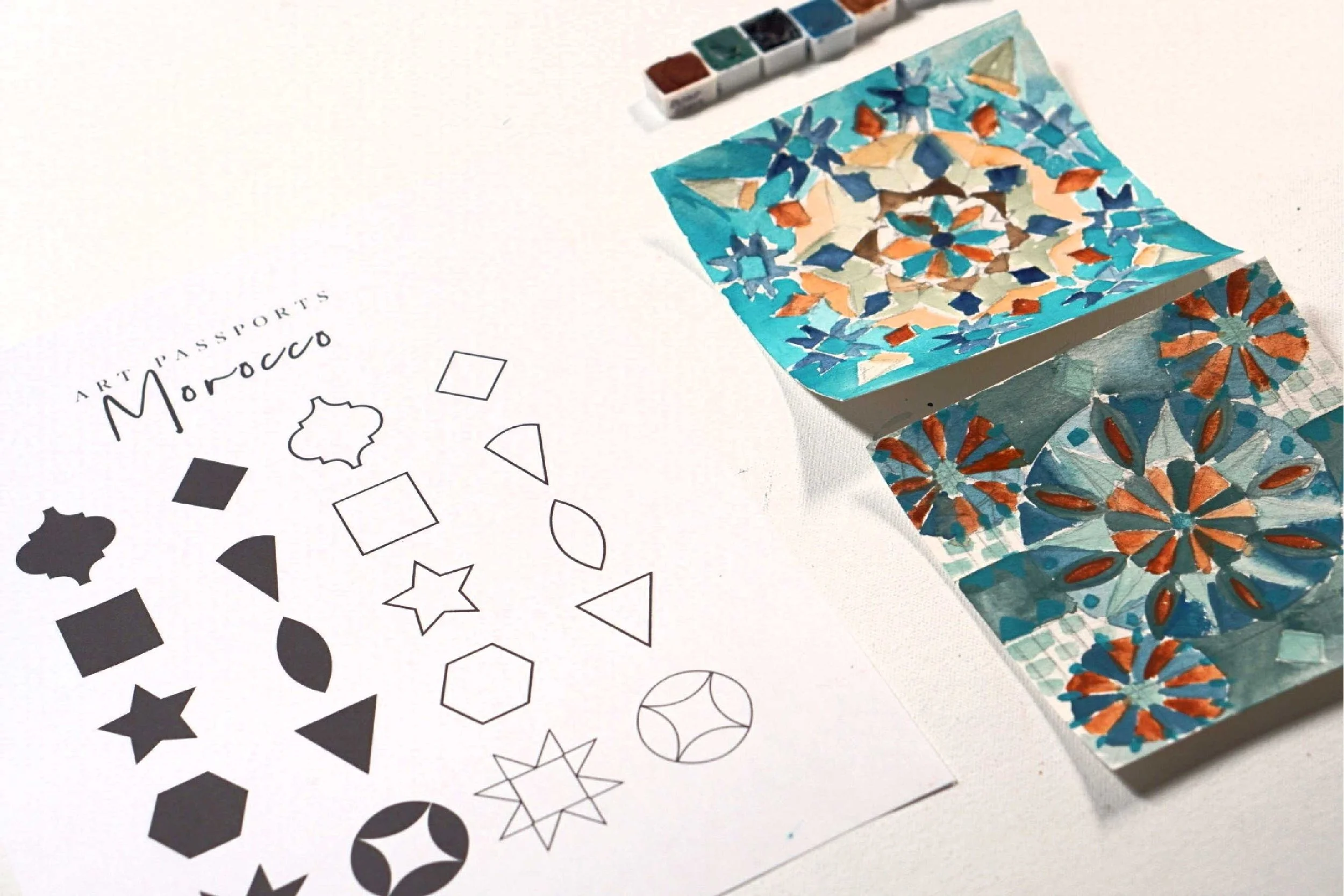 In this class, we will discover the beauty of Morocco from the comfort of our homes. Through these art lessons we will practice patterns and designs inspired by Moroccan tiles, roam the souks with layers in our art journals, journey to the Valley of Roses through expressionistic painting, connect to the people of Morocco through two portrait paintings, look at the perspective of the lands of Morocco through mini studies and architecture design, and create an abstract painting inspired by the Riads. If you have a passion for art and travel, this is the class for you!