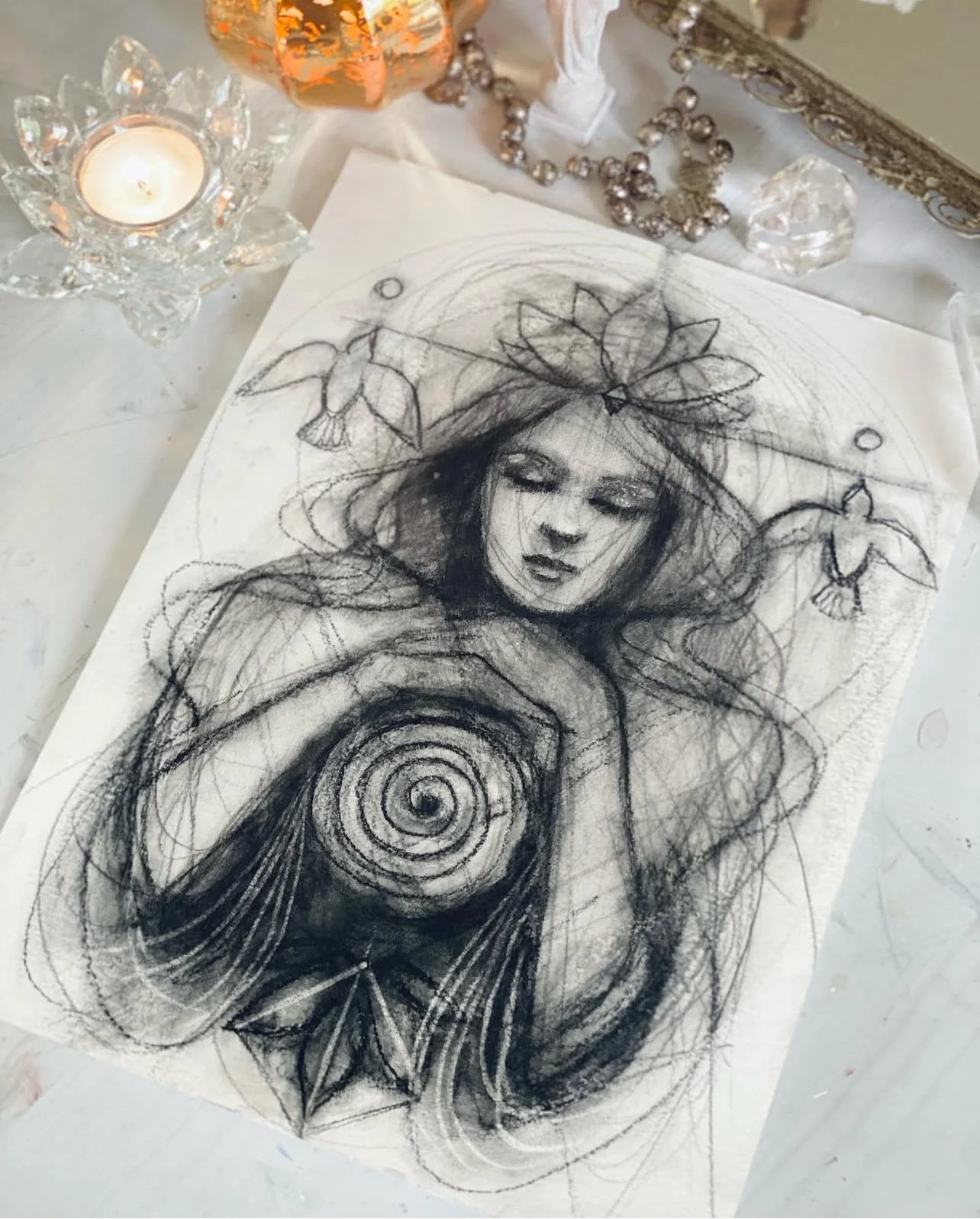 Goddess portrait studies in mixed media