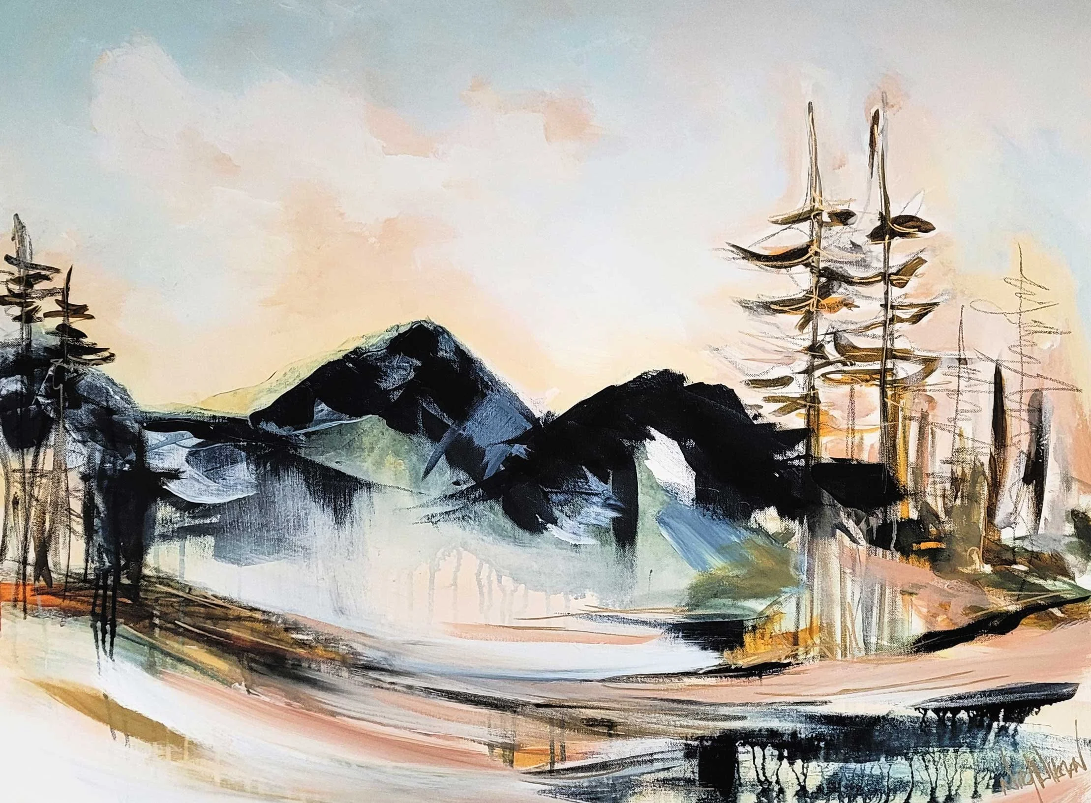 Bring it all together with this layered, atmospheric landscape featuring trees, mountains, and a soft morning light. Nikol encourages intuitive placement here, trusting your eye and your instincts as you build a scene with real depth and personality. By the time you finish this one, you'll feel the shift in your creative confidence.