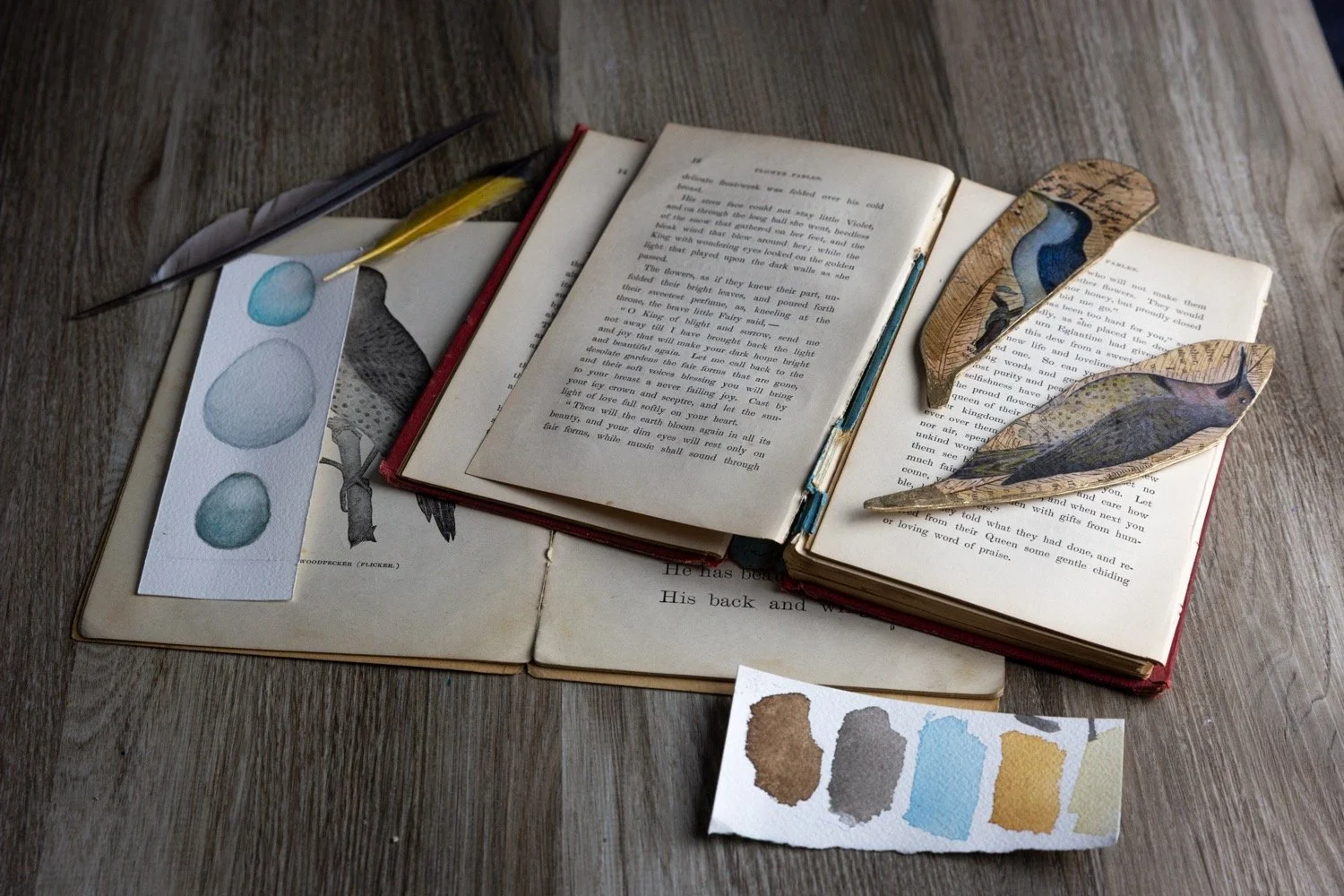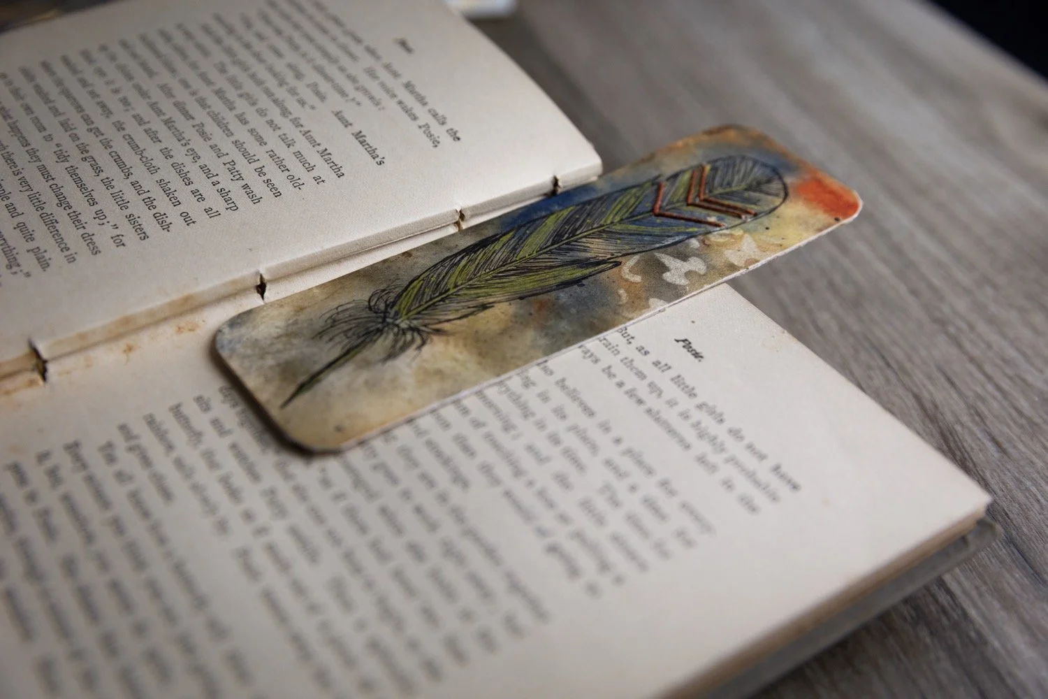 In our time together, we’ll explore different creative techniques to bring feathers to life with watercolor, ink, collage, and a little shimmer of metallic detail. You’ll have the chance to choose a feather that resonates with you, turning your bookmark into something not only beautiful but deeply personal, a keepsake that reflects your own journey.