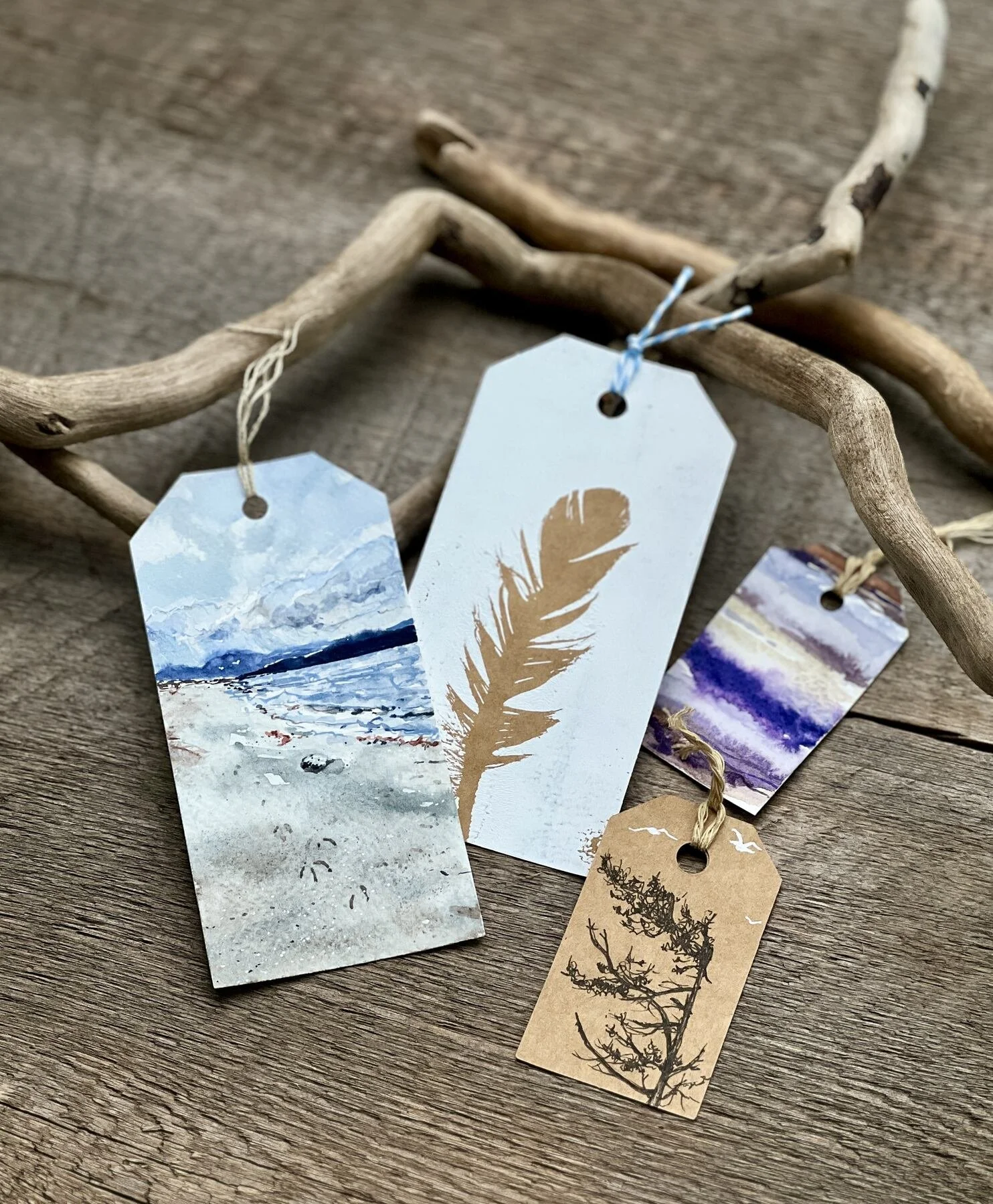 In the main lesson, you’ll transform your gathered observations into a series of small, tactile artworks using brown kraft and watercolour paper tags. Working on these tag surfaces, you’ll create a collection of drawings, black and white Gelli prints, texture prints, watercolour paintings, and poetry using all the inspiration from your particular landscape.