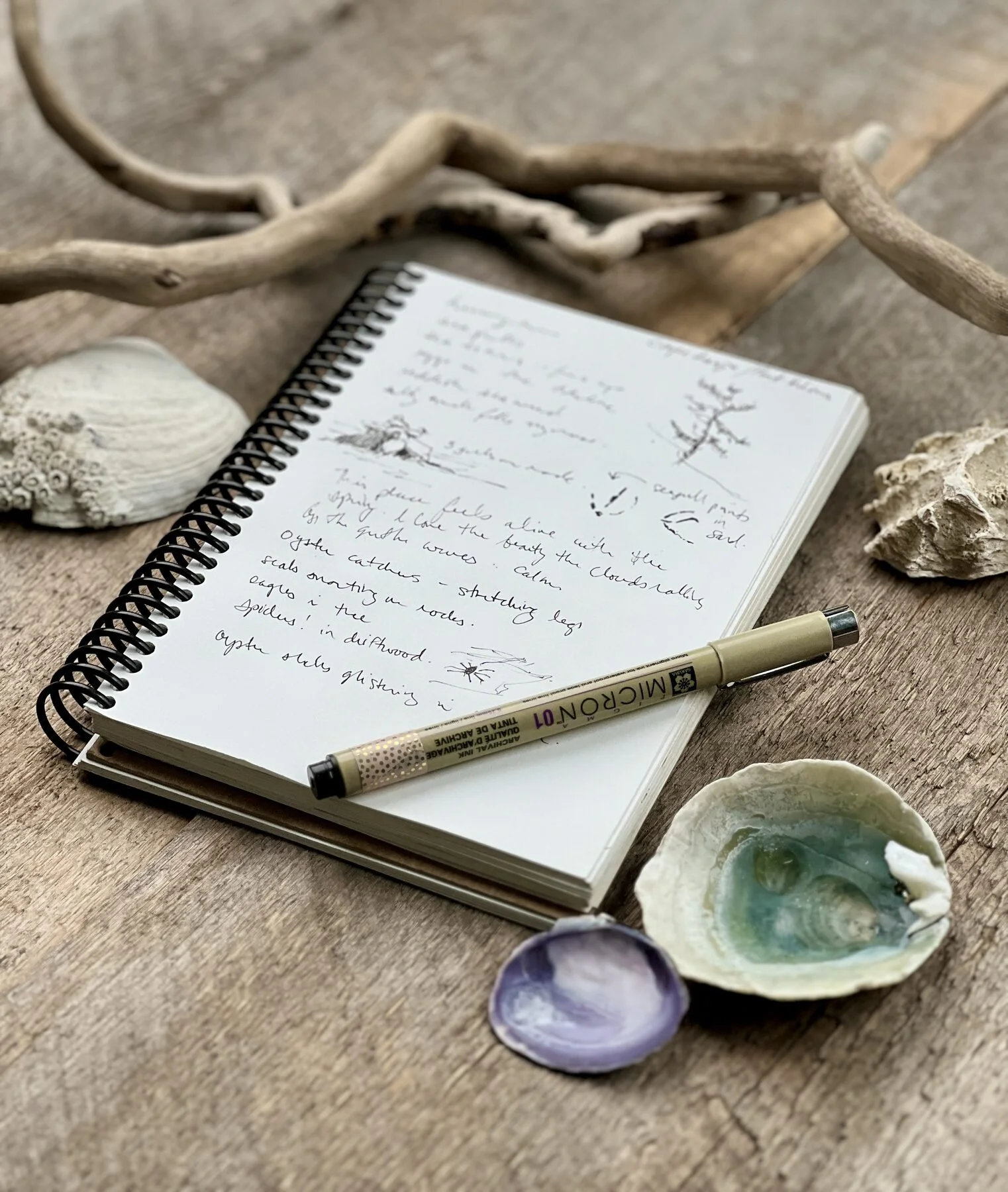 In this warmup, Nicole will take you on a field trip to one of her favourite beaches near her home on Vancouver Island. As she shares the sights and sounds of the landscape that inspires her, you’ll be invited to find a place of your own that can become your inspiration spot.