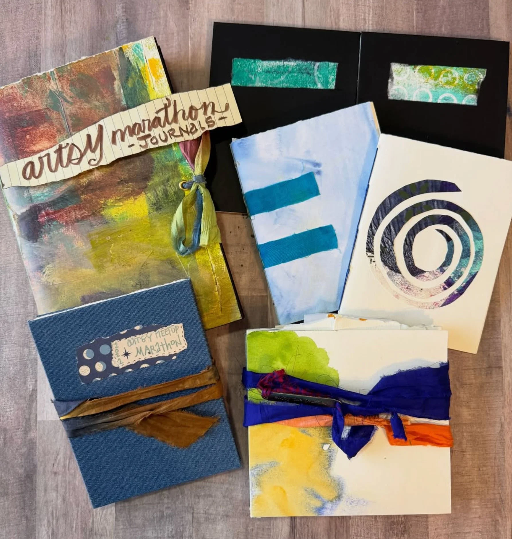 Demonstrations for filling your books with collage, mark-making, intuitive writing, and imagery, so the making doesn't stop when the folding does