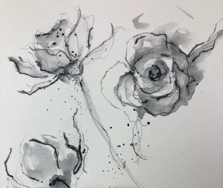 In addition, we will use newsprint and charcoal to continue to loosen up and create pages and pages of flowers to help to develop your vocabulary of mark making, and explore value to give form to your drawings.