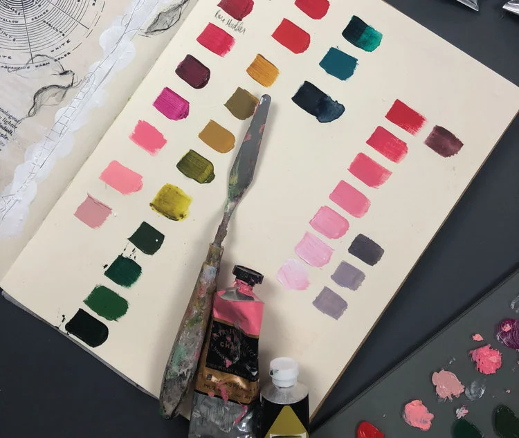 Arteza - If you are new to acrylics and new to color, this would be a great way to start. The set of 60 is about $40.00 and the paint is beautiful. Colors I used in the class are: Oxide Yellow, Olive Green Chromium Oxide Green, Bordeaux, Rose Madder, Cochineal Red, Vermillion Red