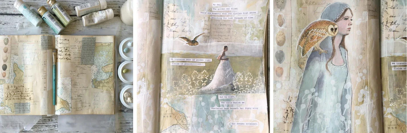 Gather your favorite ephemera, collage paper, mixed media materials and your inspiration for this art journaling adventure...remember to consider meaning and symbols. Choose your colors, marks and images to convey your emotions based on your relationship with the poetic words. I have also curated some bird printables for you on this Pinterest board.