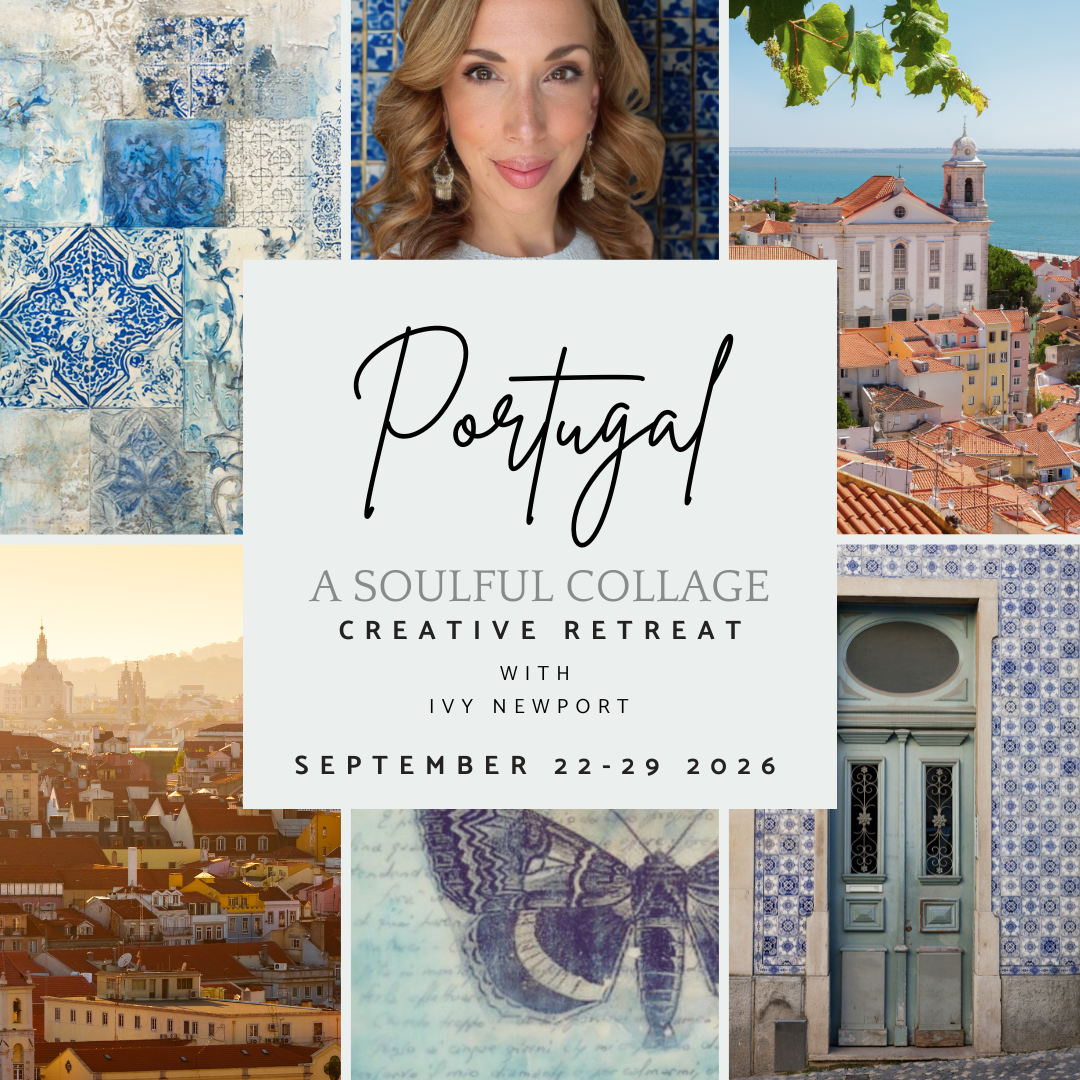 Hello creative friends! I’m beyond excited to invite you to join me for a soulful collage and encaustic retreat in the heart of Portugal this September! Our last retreat here was a beautiful success and I’m thrilled to offer this adventure again!