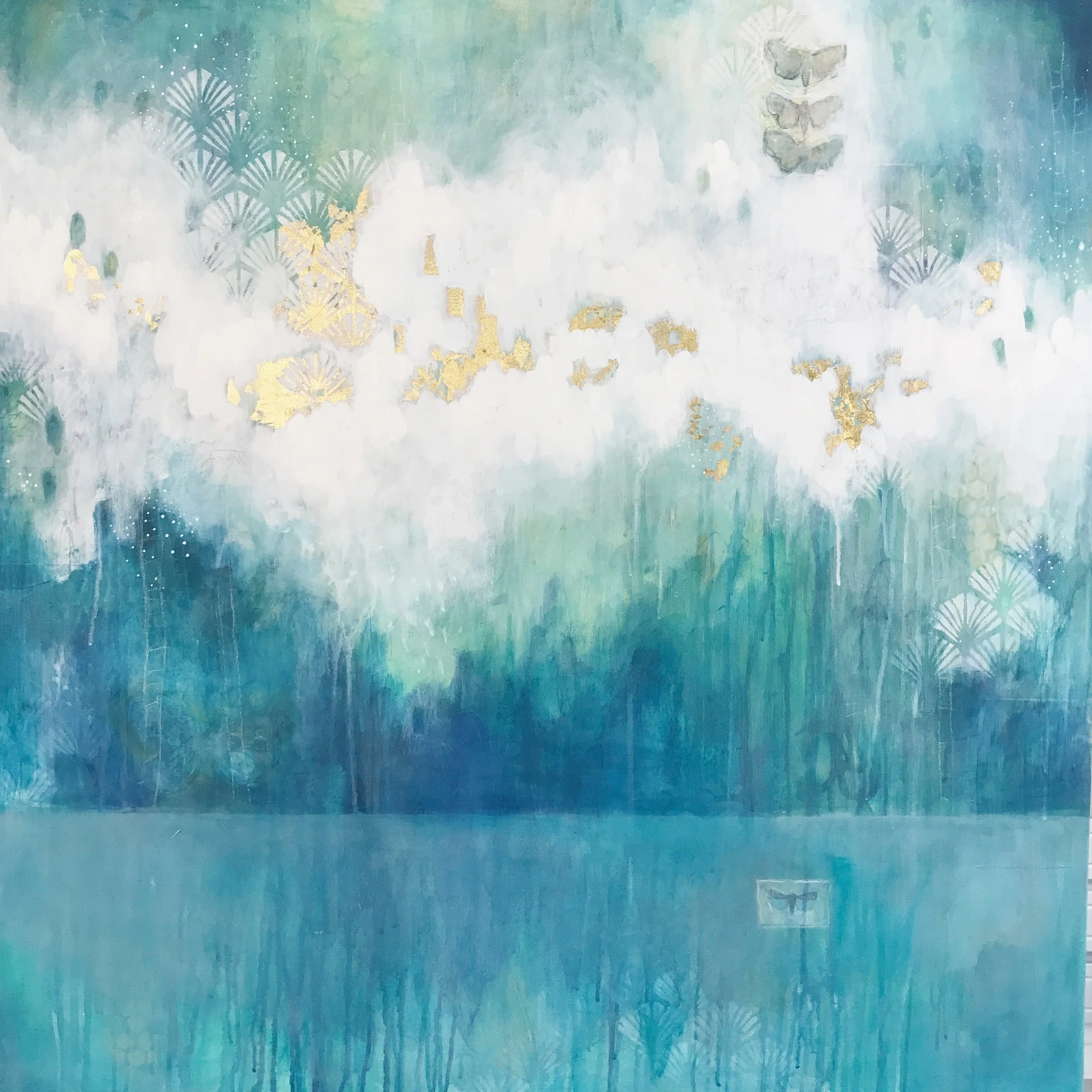 The first painting will explore bold color! We will pick a color palette as our guide and go from there - incorporating pattern, collage, gold leaf and mixed media.