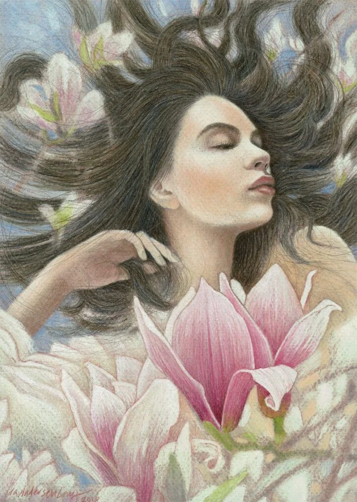 We will create a female portrait in graphite, embodied by the ancient goddess of Aurora, the bringer of Dawn. Aur is also an ancient term for gold, and in this vision of her, she emerges out of Earth as Goddess of Alchemy. She will be our gentle guide in ascending the soul, the deeper, metaphysical aspect of alchemical work.