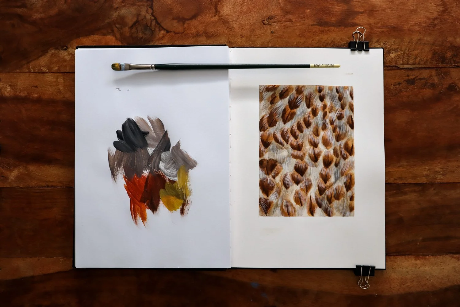 In this lesson we will look at detail in feather patterns - and see them as abstract shapes that can be rendered in intentional layers. It is our opportunity to be amazed by their intricacy, the way they work together, the layers, the texture, and the colours. We are going to be using pencil to sketch out the basic patterns, then transparent layers of acrylic paint to bring them to life!