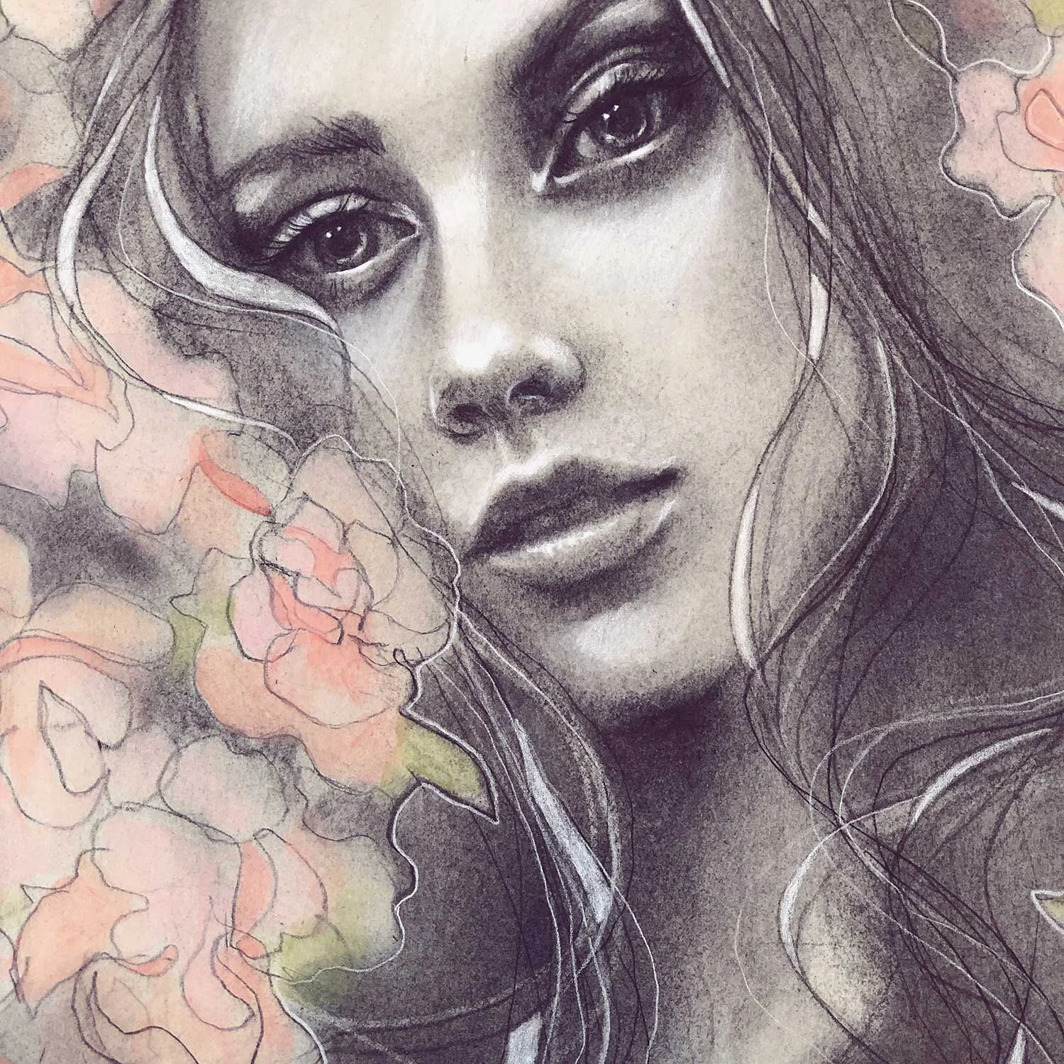 Working first in black and white with charcoal was also such a great study in value and of course constructing a face and observing the light and dark is always a joy and such good practice! The soft addition of acrylic glazes of color was the finishing touch.