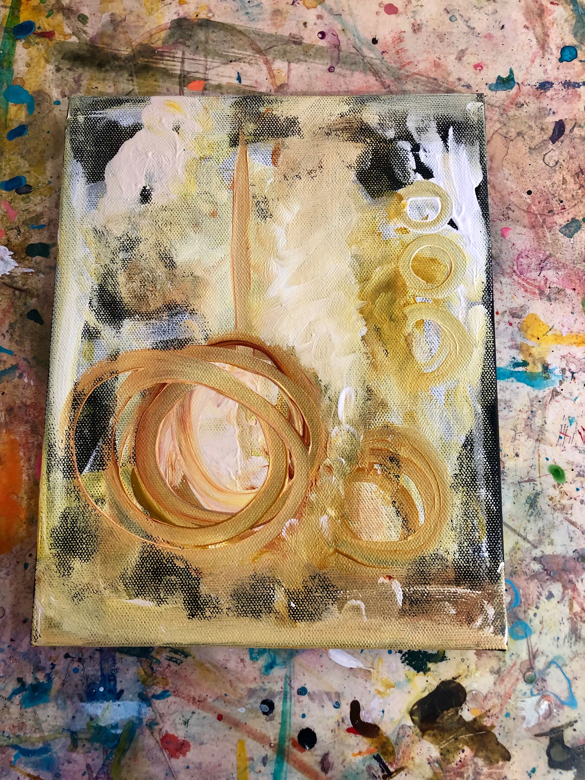 Once we activate our Sacred Circles and do some breath work, we’ll head into a 12” x 16” canvas (you may choose any size you wish), and start creating a palette for our abstract work.