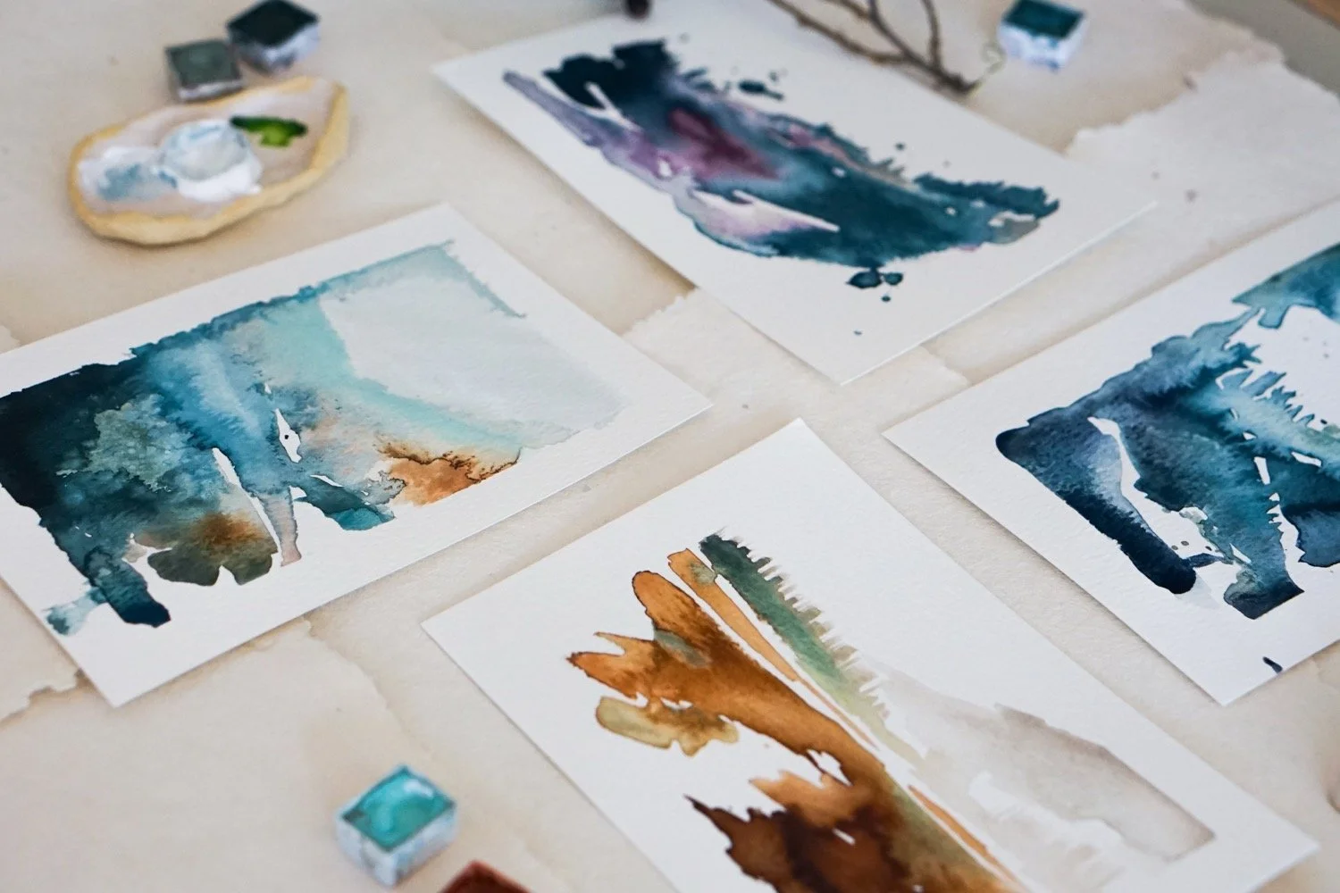 Discover the quiet magic of winter through Winter Findings, our latest creative class by Kristy Kensinger. Inspired by the depth and beauty of the colder months, this class invites you to explore muted jewel tones, fluid ink washes, and delicate layers that echo the shifting landscape of snow, water, and sky.
